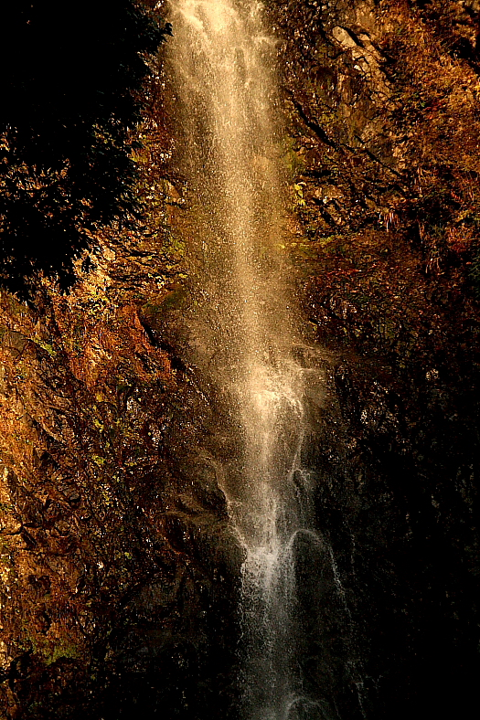 どんどんと光の帯が滝下に移動してる。