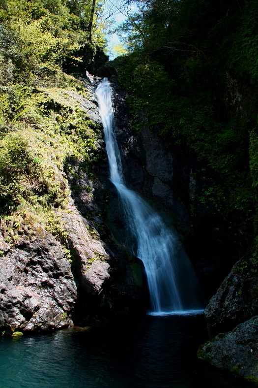 千本滝 2010/4/25 徳島県那賀町木頭名 坂州木頭川支流 大美谷川 落差:30m 滝の向き=西 10時過ぎに「百間滝」から一旦6.5km引き返し那賀町(旧木沢村)R193を目指すR16ジグザグ道路地図を見て目まいがした。 本当にこの先R193に出られるのか心配になりだした。 予感は的中し峠を下りだしてかなり経ち”災害により迂回”の標識で”迂回”を余儀なくされる。 ”迂回路”があってよしとするが運転する(写録の旅人さん)の疲労は察して余る。 こういう時の頭の切り替えが素早いのも(写録の旅人さん)が全国徘徊を続けてこられた徘徊達人たる所以だ。 「ただでは転ばん」という言葉があるが「黒滝寺によっていきましょう」と言う。 成る程、地図を見ると”迂回路”近くには「黒滝寺」がある。 よくわからないが(新四国曼荼羅霊場88番札所)という意味のあるお寺さんなのだという。 小振りながら(仁王門)を持つお寺さんだった。 「黒滝寺」というくらいだから”滝”に全く縁がないお寺さんではないんだと思うことにした。 |