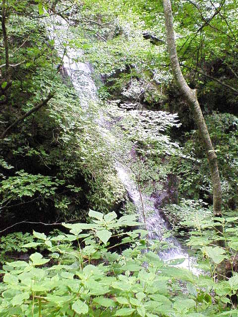 地図表示も案内標示もなく農作業の人に教えてもらい12時半ころ荒れた林道からわずかに見える谷に到着。