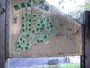 ゲートを通り標高差115m、長さ1,250mの舗装路を下ると笠塔橋の先に広い駐車場、管理棟、トイレ。