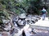 トイレ脇の遊歩道を笠塔の滝まで400m標高差60m、簡単な案内図に従い緩い坂を登り最初の”左の橋”を渡って更に”滝下流の橋”を渡り歩10分程。