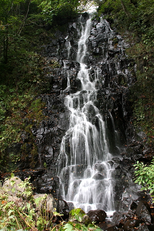 漆黒のなかなかいい形の滝だった。